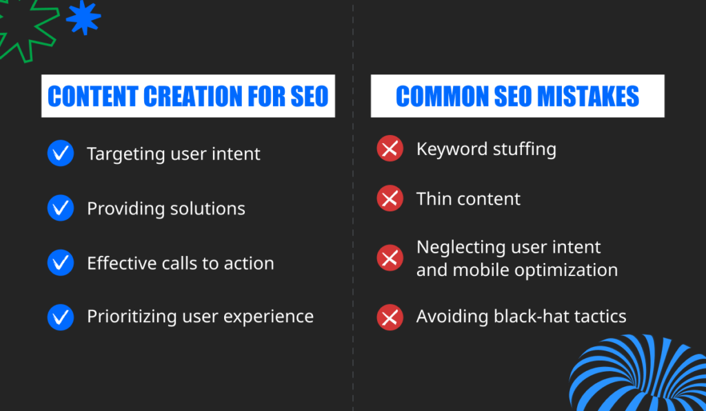Avoid keyword stuffing. Unnaturally forcing keywords into content creates a clunky reading experience and you will get flagged by search engines.